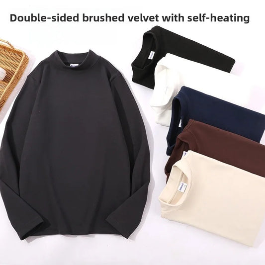 Zwaargewicht lange mouwen effen heren T-shirt met col