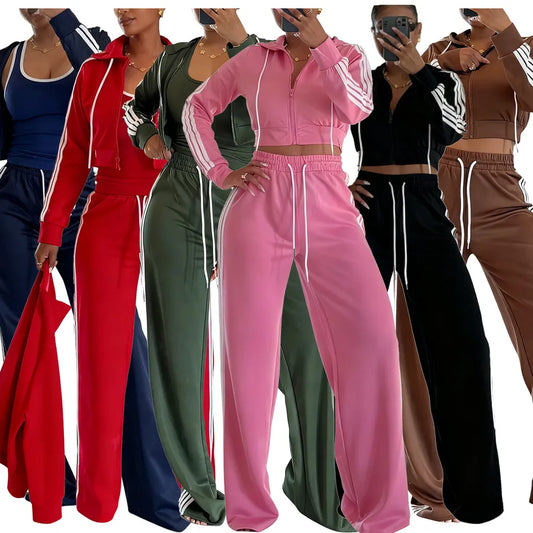Elegant en comfortabele gebreide vest en wijde broek tweedelig set