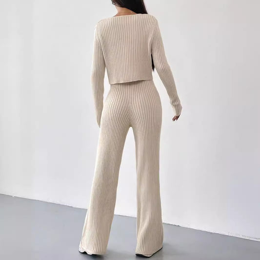 2-Delige Dames Set Top Met Lange Mouwen En Broek Met Wijde Pijpen