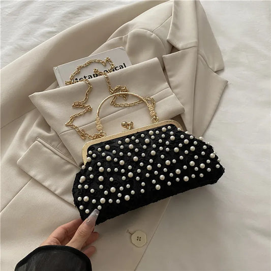 Dames Avondtas Bloemenapplicaties Parels En Clipsluiting