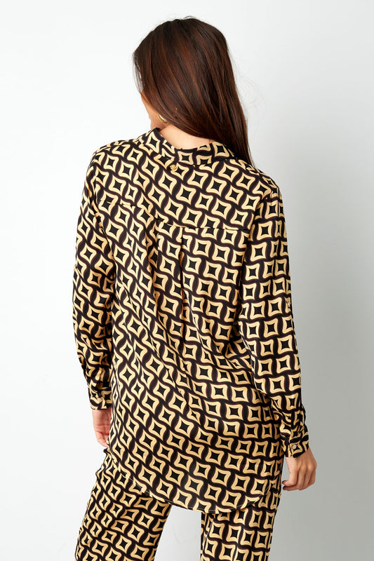 Gestreept overhemd met contrasterende strepen luipaardprint en knoopsluiting