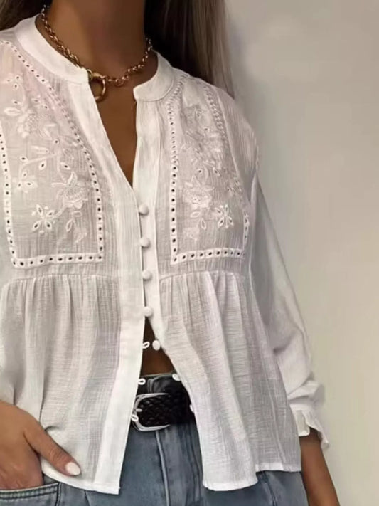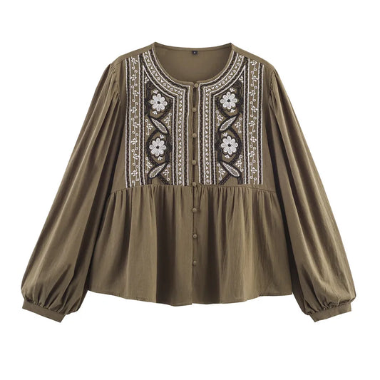 Casual modieuze Europese bohemian damesblouse met borduurwerk