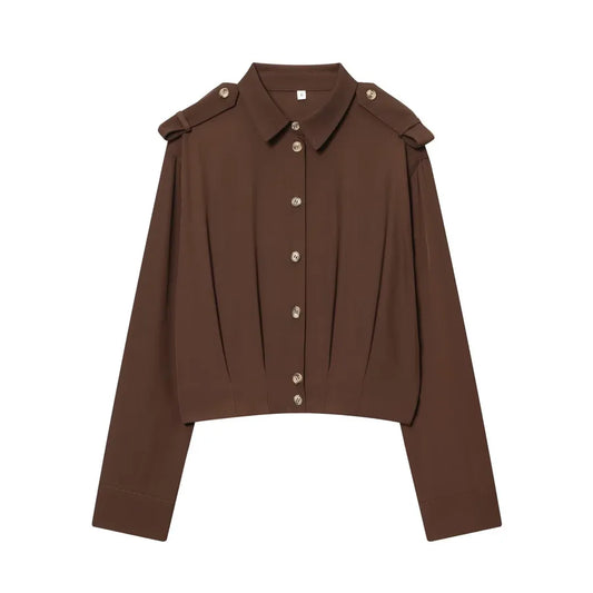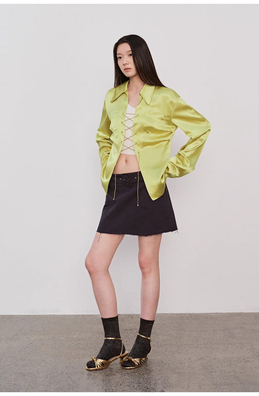 Elegant effen zijden satijnen casual overhemd met smalle tailleband