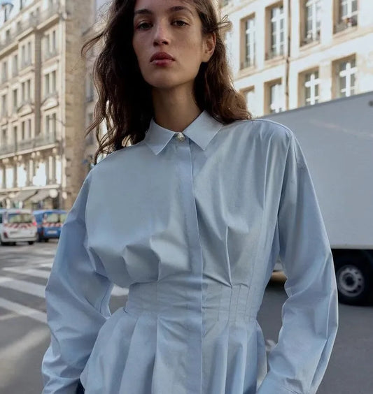 Acetaat overhemd voor dames geplooid met vetersluiting afslankend effect