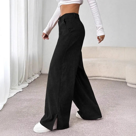 Retro Casual Corduroy Broek Met Hoge Taille En Split