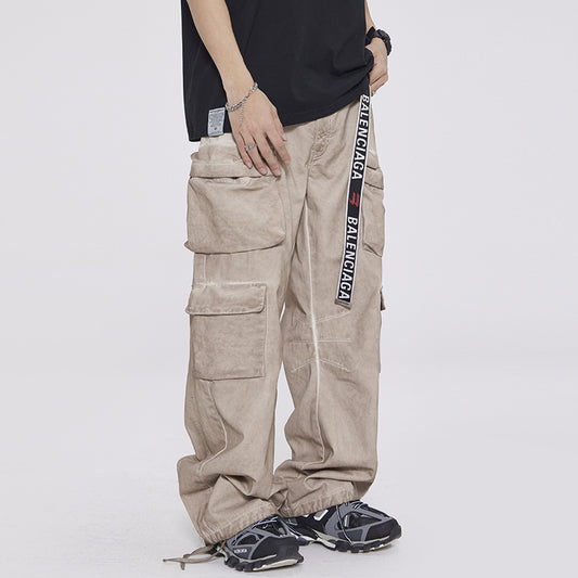 Multi-pocket Losse Rechte Retro Amerikaanse Cargo Broek