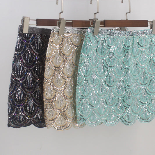 Zware industrie pailletten golfrand heupomsluitende korte rok