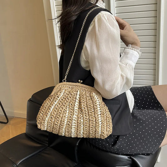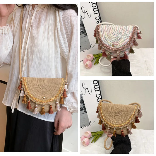 Bamboe effen geweven halve cirkel flip cover crossbodytas