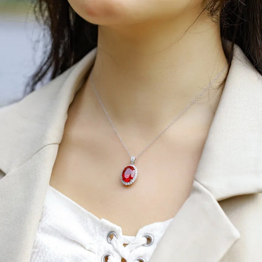 Lab gekweekte kleur robijn edelsteen 925 zilveren 8 karaat ketting