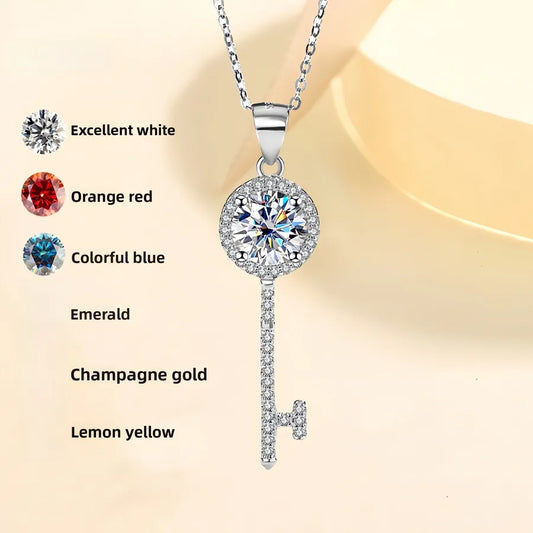 925 Sterling Zilveren Moissanite Sleutelhanger Ketting