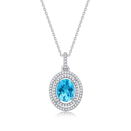 S925 Sterling Zilver Luxe High-definition Oceaan Hart Blauwe Topaas Moissanite Ketting