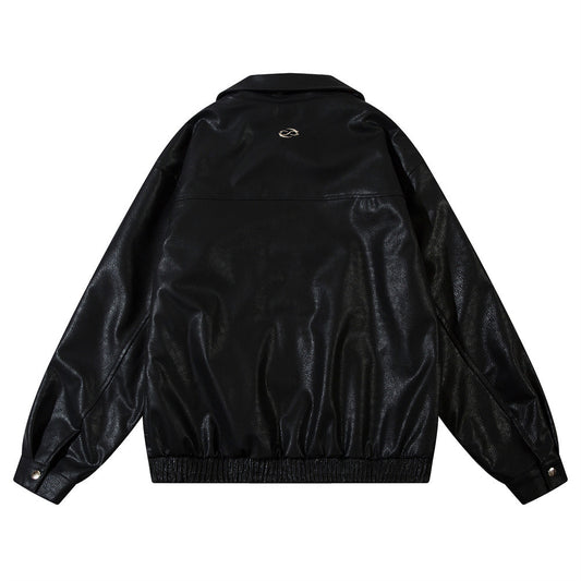 European And American Losse PU-leren unisex jas met geborduurde opdruk