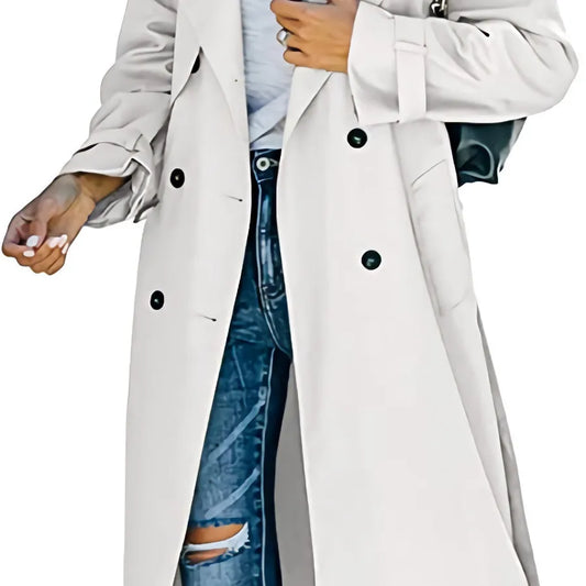 Slanke middellange jas met dubbele rij knopen en omslagkraag