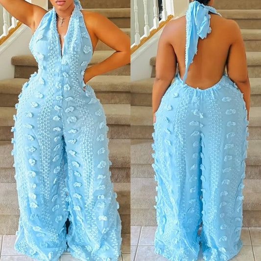 Elegante halter rugloze jumpsuit met borduurwerk Europese stijl
