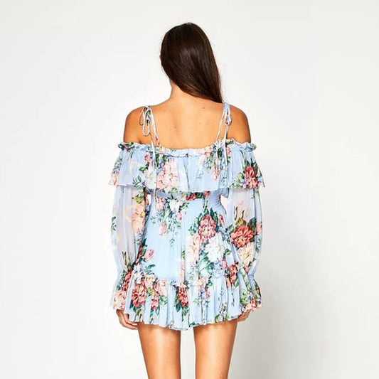 Luxe borduurwerk off-shoulder volant bloemenjurk