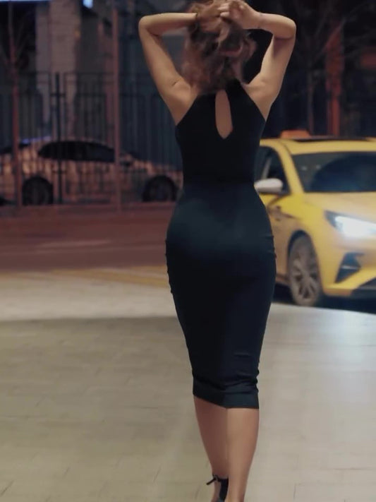Sexy mini-halterjurk met goudkleurige details
