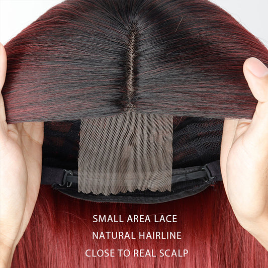 Wijnrode synthetische lace wig 5x5 golvend haar