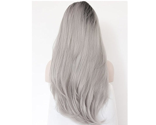 Grijze synthetische handgehaakte kanten pruik