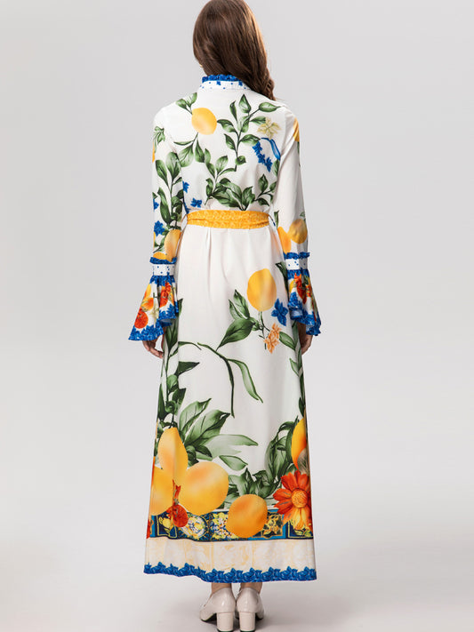 Revers vetersluiting bedrukt lange mouwenmaxi-jurk