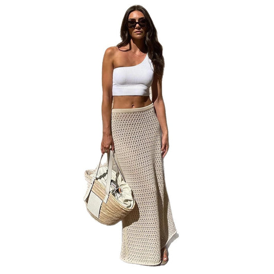 Effen kleur geplooide maxi-rok met hoge taille voor dames
