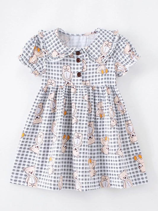Verkoper:AVIREY.NLNormale prijs €25,95Normale prijsEenheidsprijs / perAanbiedingsprijs €25,95Kinderjurk met ruitjespatroon en teddybeerprint en Peter Pan-kraag