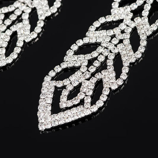 Roestvrijstalen blad statement oorbellen met strass-steentjes