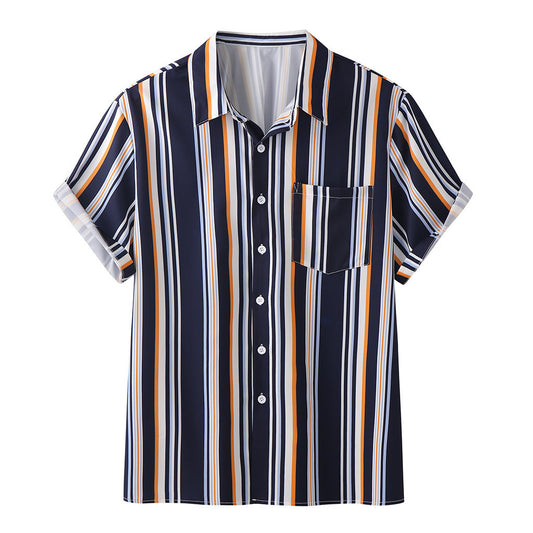 Heren opstaande kraag contrasterende kleur gestreept casual overhemd