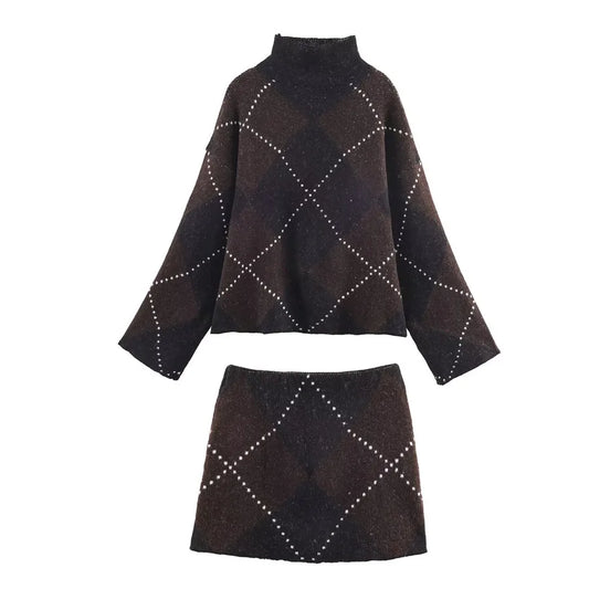 Dames streetwear casual outfit: gebreide coltrui met lange wijde mouwen of mini-rok
