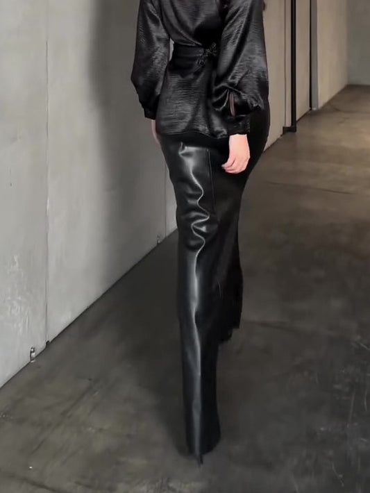 PU-leren veter-rits hoge taille heuprok met ceintuur