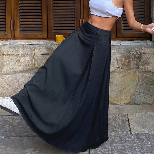 Effen kleur geplooide maxi-rok met hoge taille voor dames
