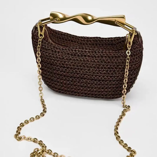 Luxe Designer Kleine Stro Schoudertas Met Metalen Handvat