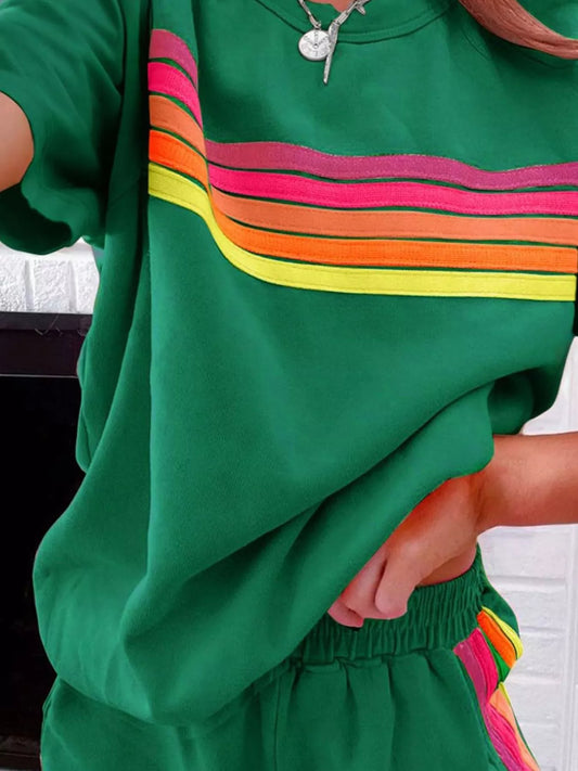 Gestreept sweatshirt met ronde hals en bijpassende shorts