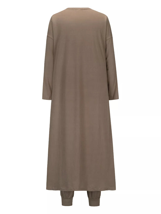 Casual losse top met ronde hals en bijpassende broek tweedelige set