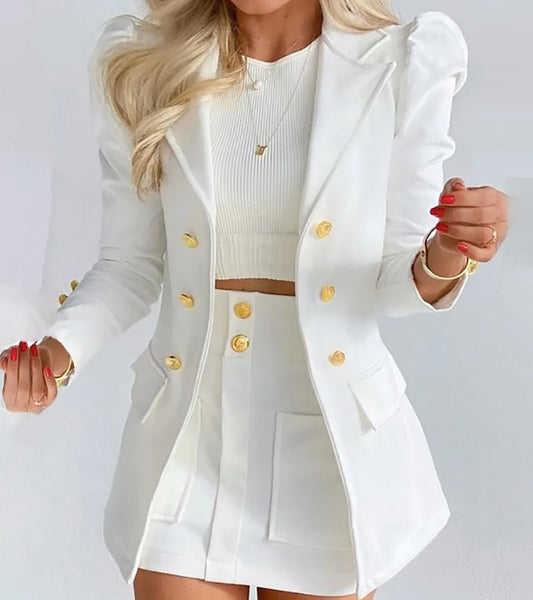 Sexy V-hals blote schouders lange mouwen gebreide trui en korte rok set
