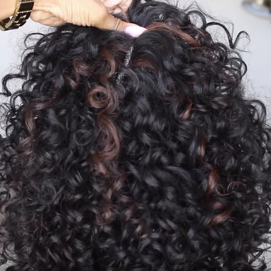 Lange golvende zwarte blonde highlights synthetische gemengde pruik