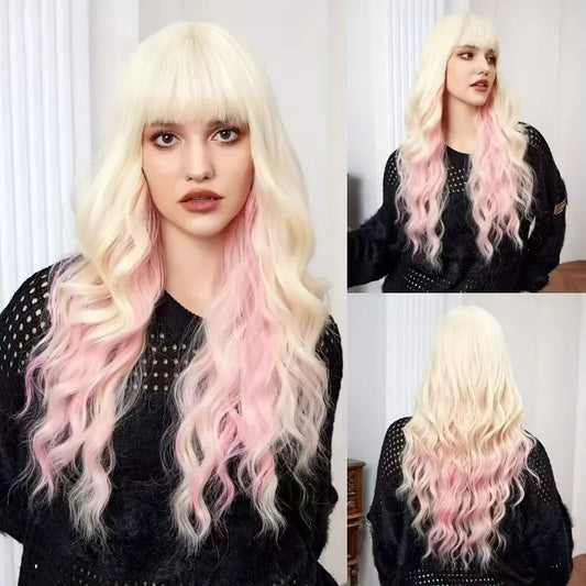 Veelkleurige Synthetische Pruik Body Wave Cosplay Hittebestendig Haar Met Pony