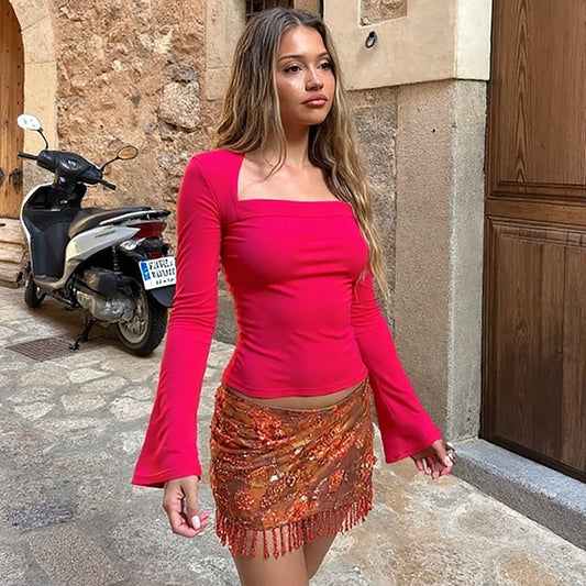 Festival De Jordan Top Met Trompet Mouwen Cut-Out En Plooien