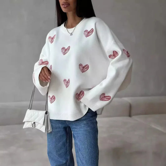 Dames Gebreide Ronde Hals Lange Mouw Gestreepte Trui