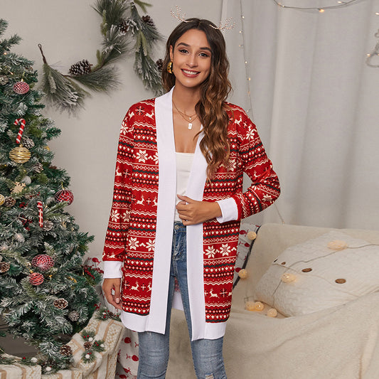 Amerikaanse Losse Open Trendy Cardigan Met Etnische Print