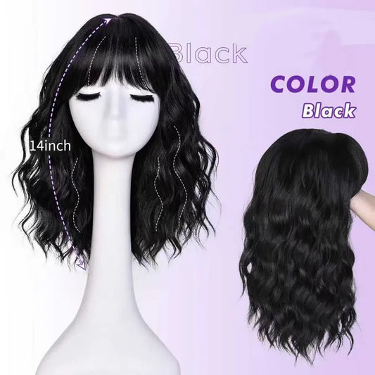 Synthetische pruik met pony gemiddelde lengte krullend haar