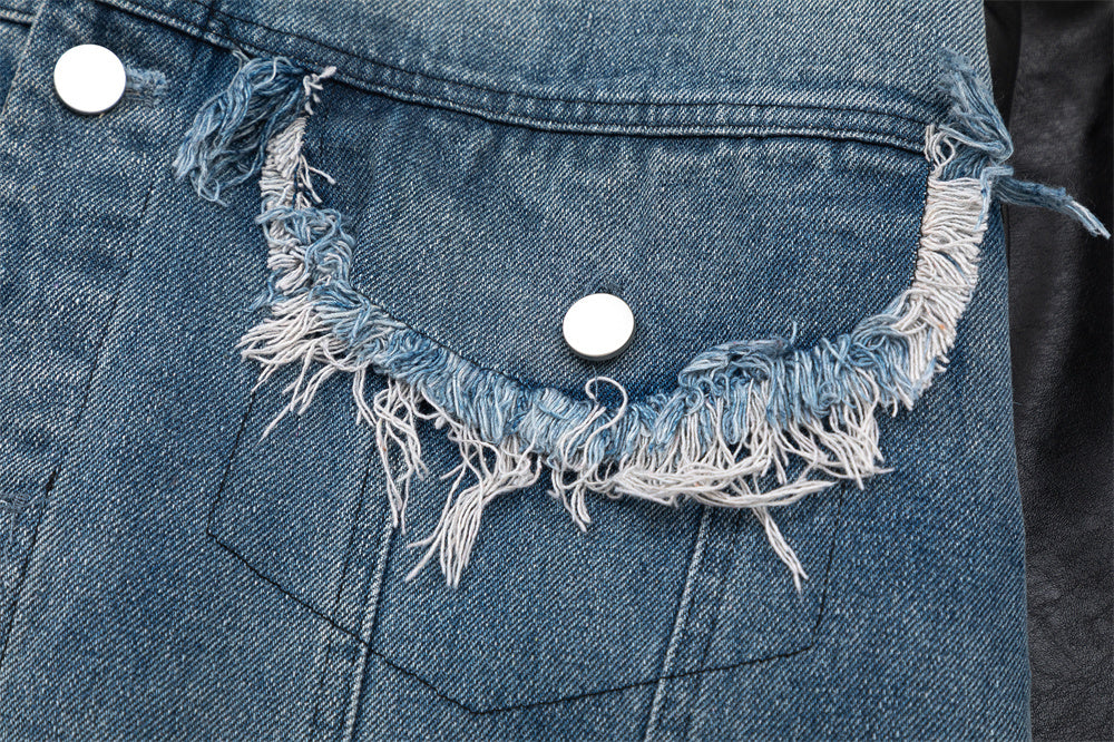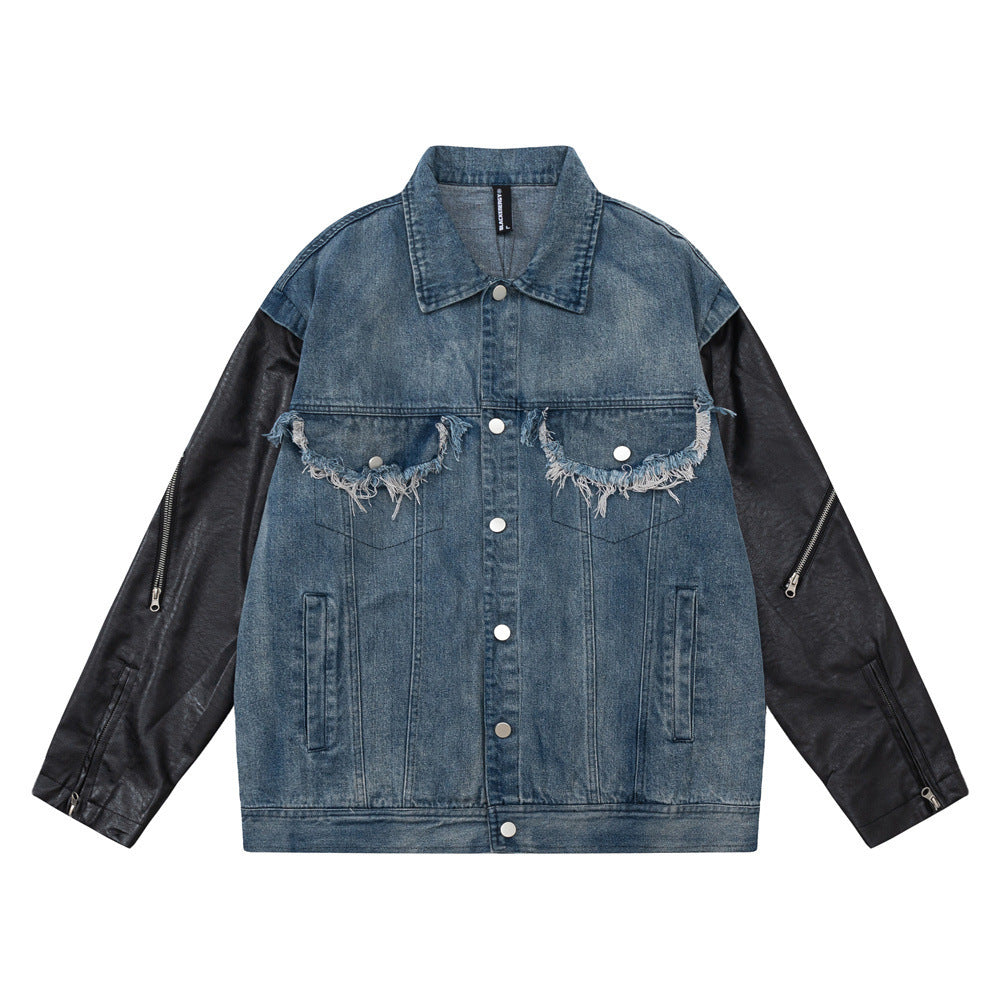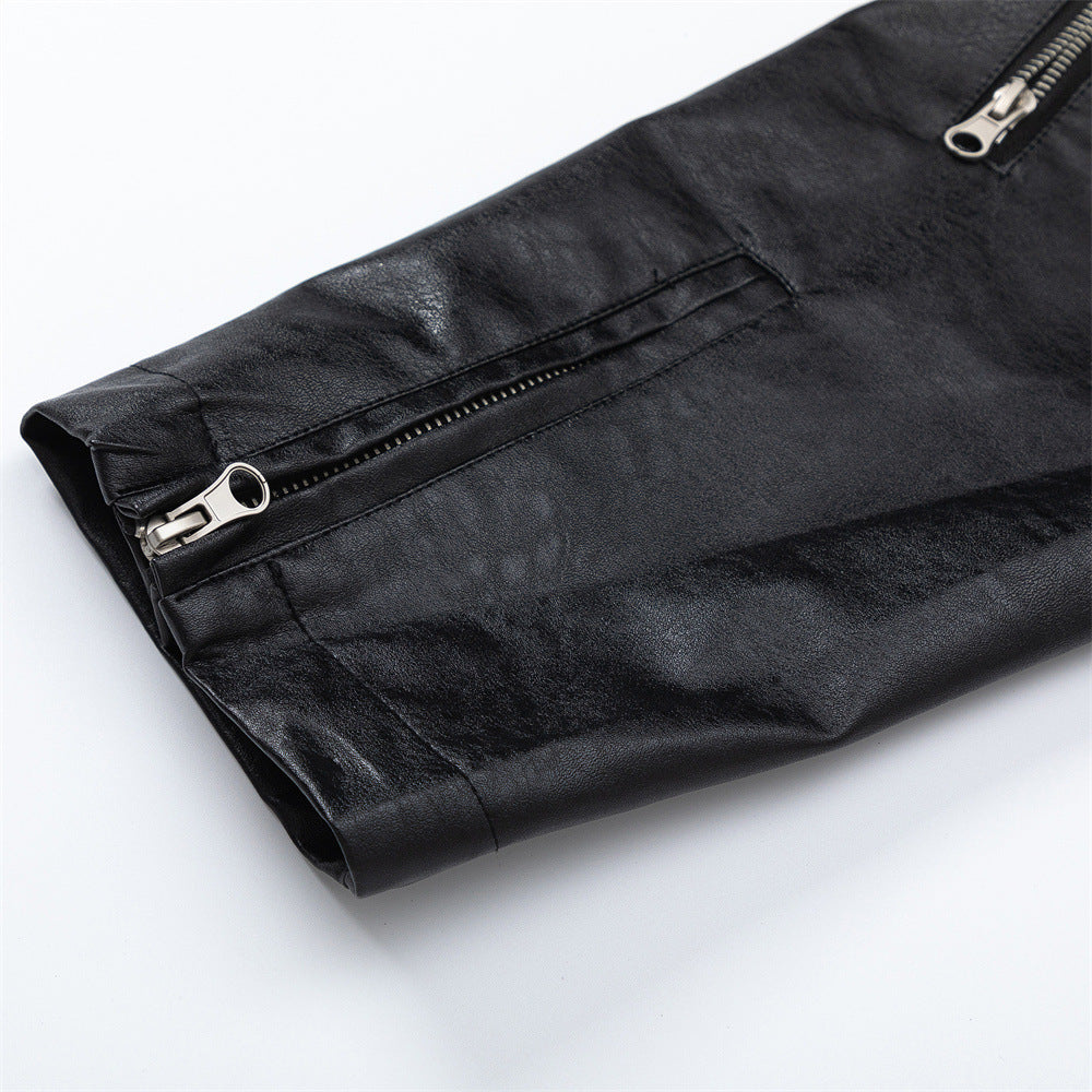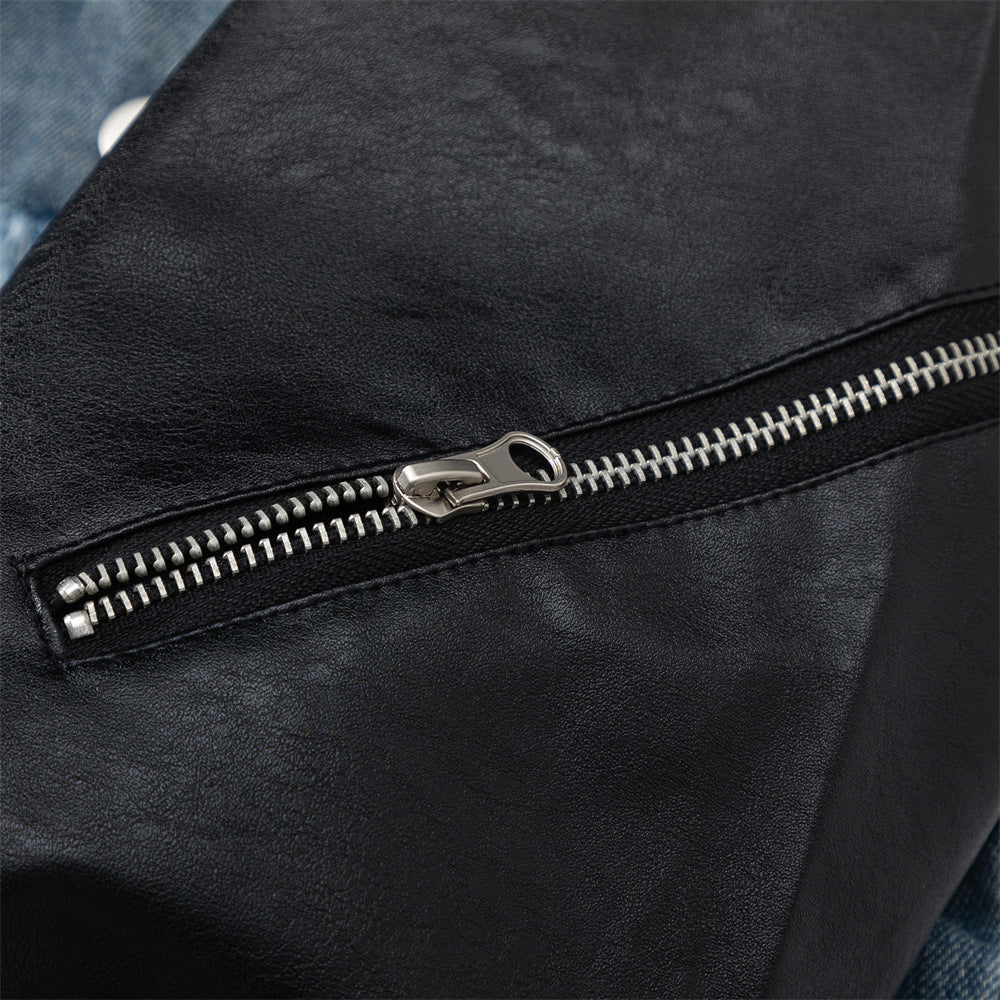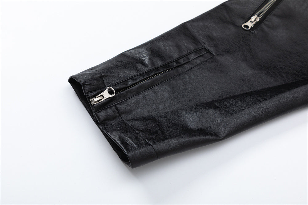 Amerikaanse PU-leren spijkerjas met stiksels