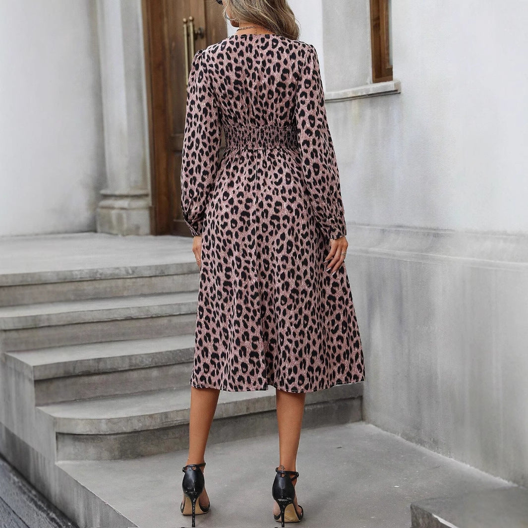 Lange mouwen midi-jurk met luipaardprint Amerikaans