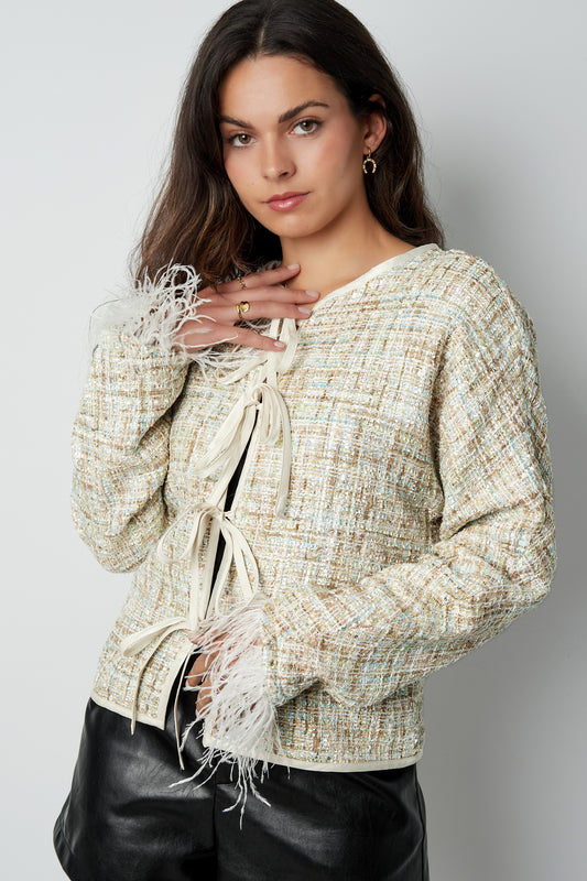 Witte Bladeren - Top Met Lange Mouwen Ruches En Strikjes