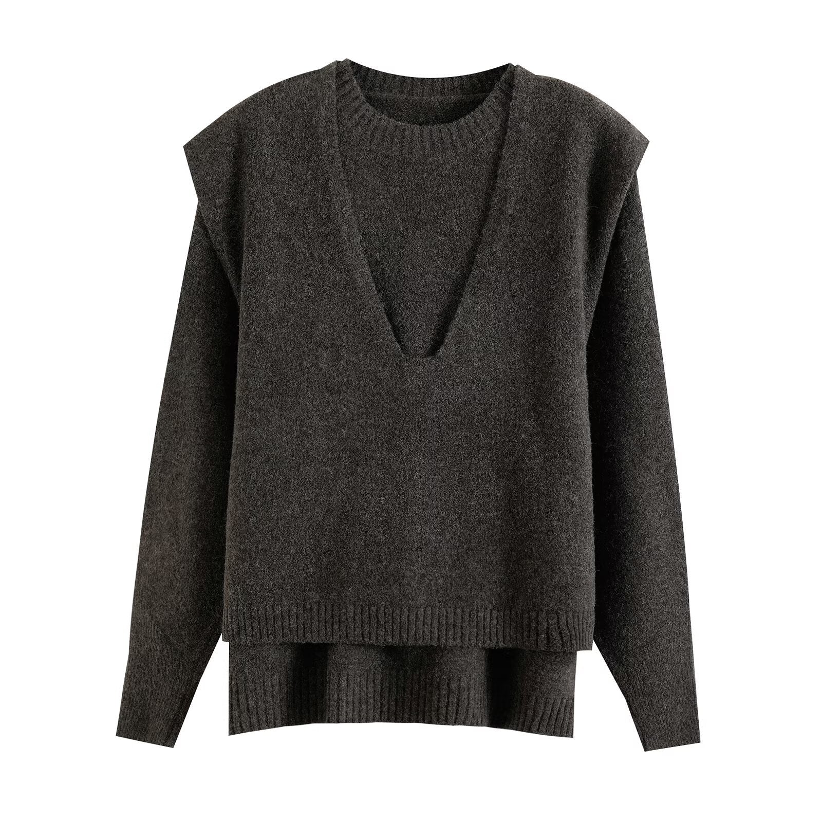 Modieuze gelaagde gebreide tweedelige set