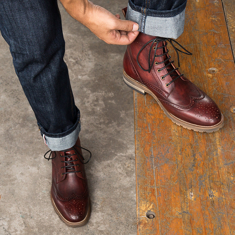 Eerste laag koeienhuid heren merk hoge leren Britse Brock Martin laarzen