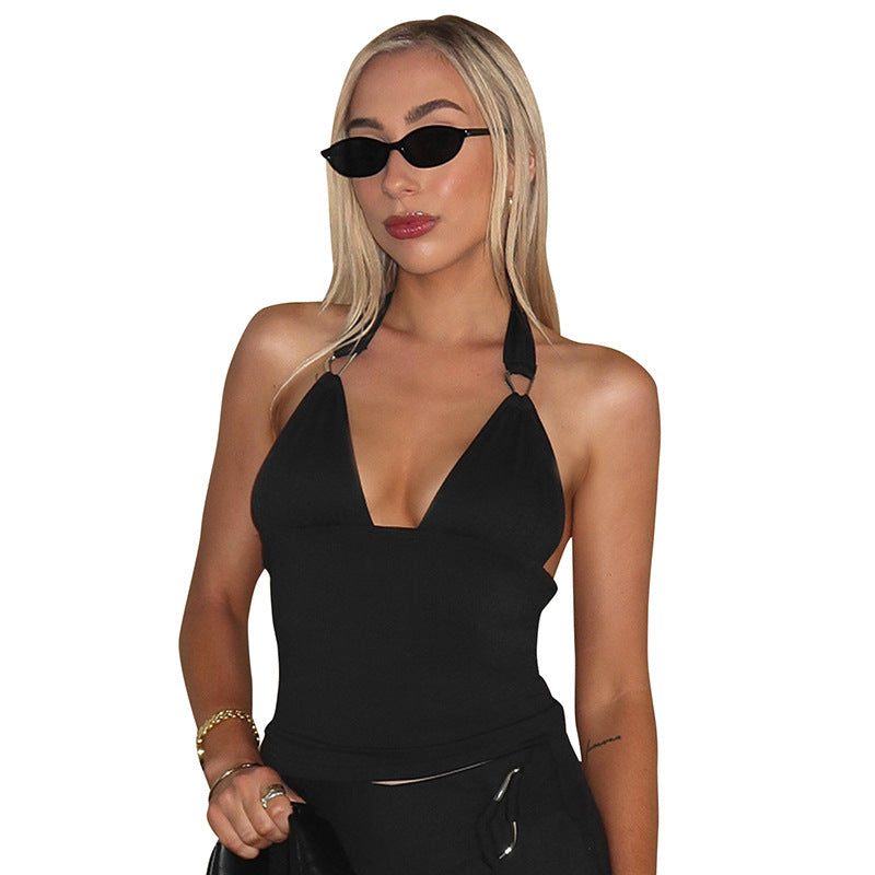 Metalen Ring V-hals Slim Haltertop