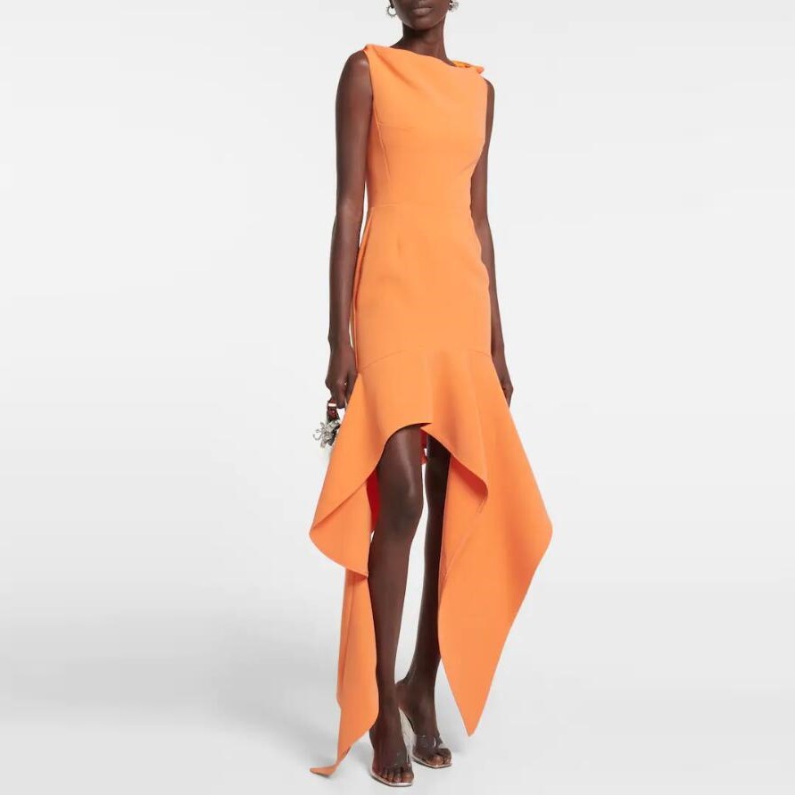Amerikaans Dames gebreide jurk met onregelmatige zoom en uitlopende schouders
