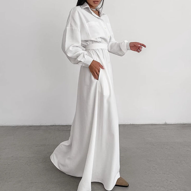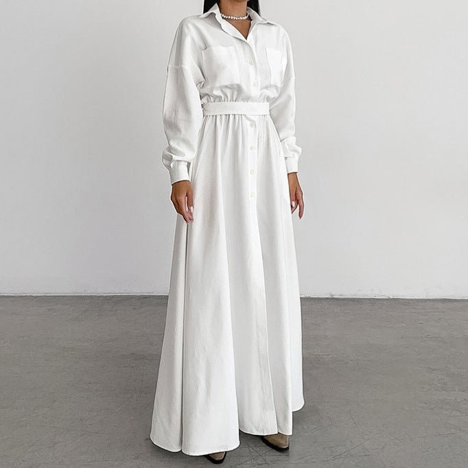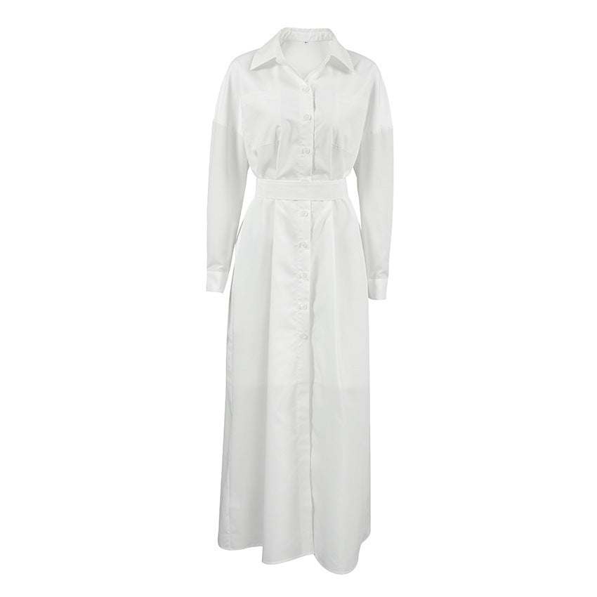 Elegante Franse overhemdjurk met knopen en ceintuur