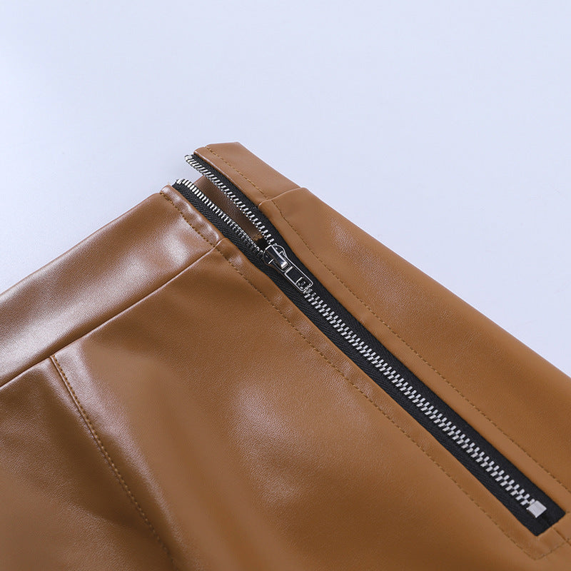 Hoge taille PU-leren mini-rok met ruches
