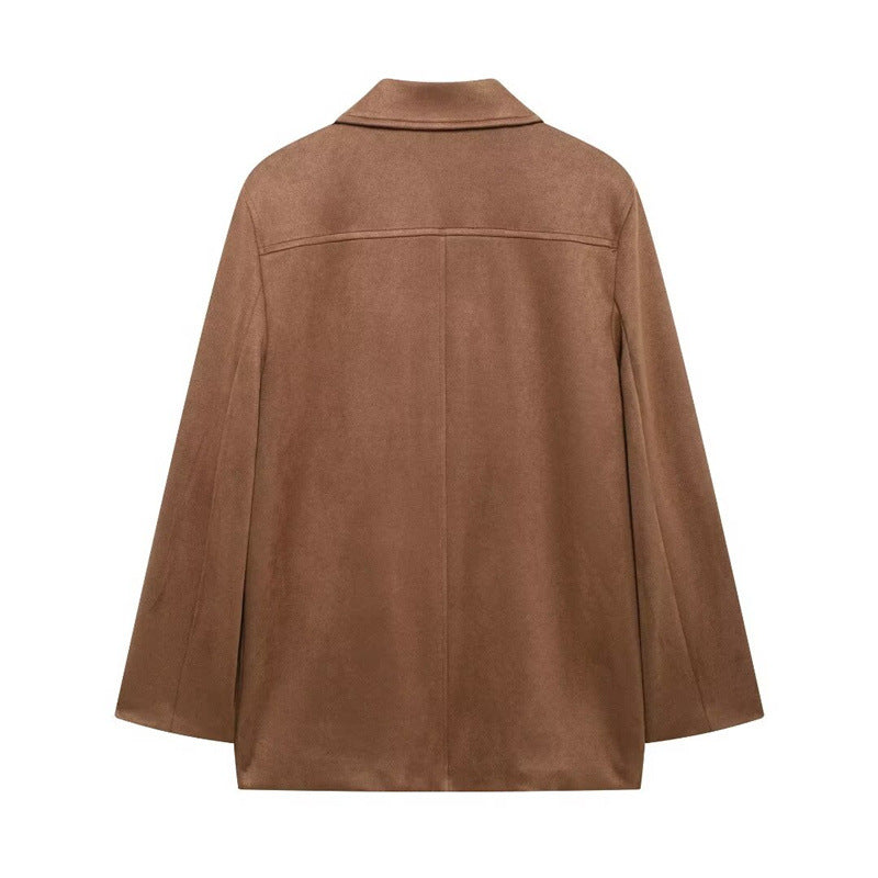 Imitatie-suède blazer en korte rok tweedelige set